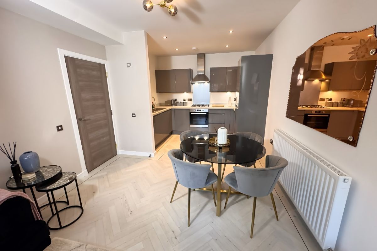Quality accommodation comprises of reception hall with a utility cupboard, lovely lounge/dining room, a particular attractive feature of which is direct access to the West facing private paved patio area, to the rear of this room we have a high specification kitchen with a range of built-in and integrated appliances. The property features two bedrooms, both of which have built-in wardrobes with the principal bedroom having access to a luxury jack and gill bathroom with over bath shower. Quality Karndean flooring has been fitted from the hall through to the lounge, dining, and kitchen areas, and quality carpeting to the bedrooms. The property benefits from gas central heating, double glazing, video-controlled entry as well as a security alarm system, and private parking bay. Early viewing highly recommended to avoid disappointment.