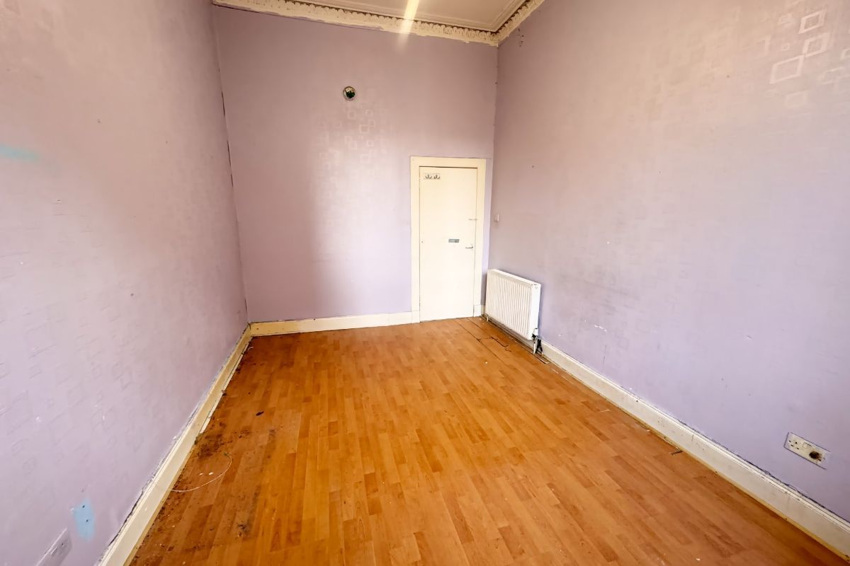 Cash purchase. One bedroom flat in need of extensive internal upgrading. Situated in heart of Govanhill. The property is just a 10 minutes’ walk away from the vibrant Victoria Rd where you will find many popular bars and restaurants. There are excellent everyday shopping facilities on the doorstep. The property is well served by public transport with main bus route and Crosshill train station close by.