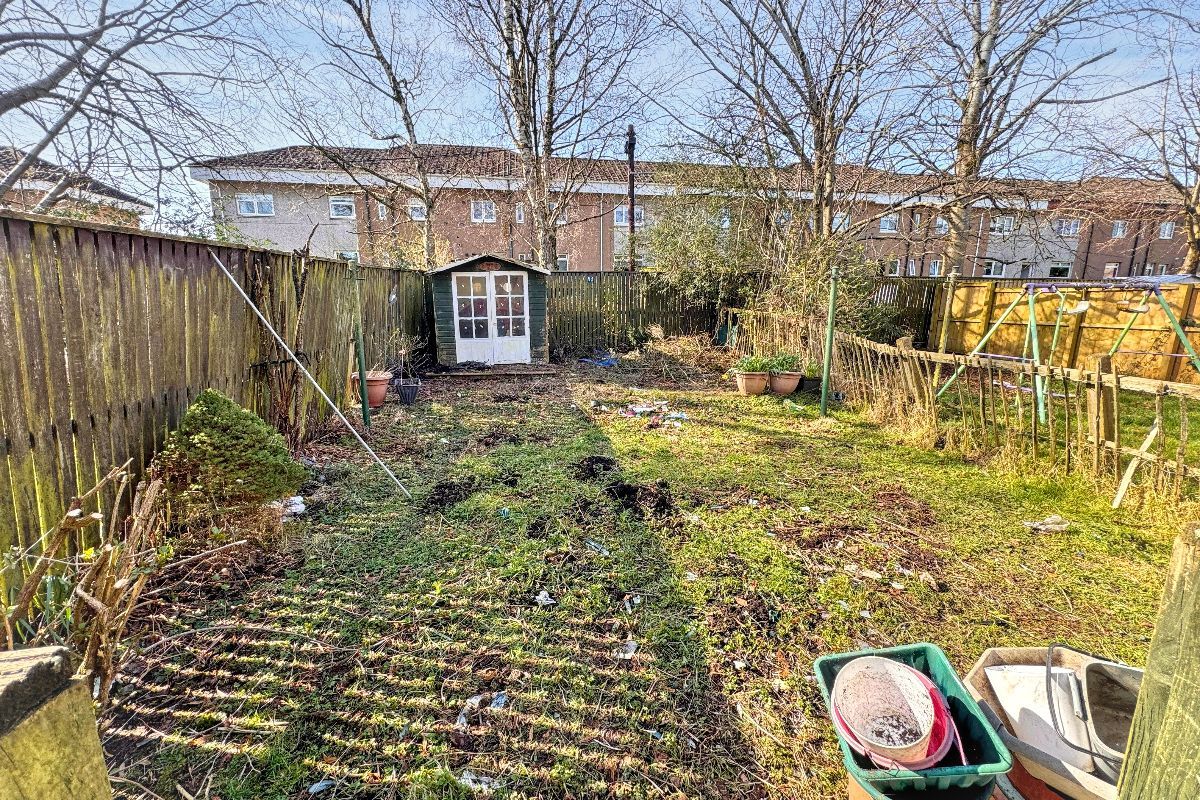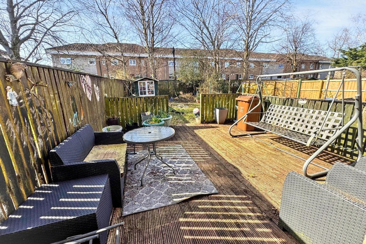 Generously proportioned lower main door terrace flat offering large family size accommodation. The property is conveniently situated for access to a range of local amenities with everyday shopping facilities just minutes’ walk away. More extensive shopping facilities are to be found within the Silverburn Retail Park only a short drive away. Commuters benefit from access to main bus routes, Nitshill train station, and the M8/M77 motorway networks all of which are close by.