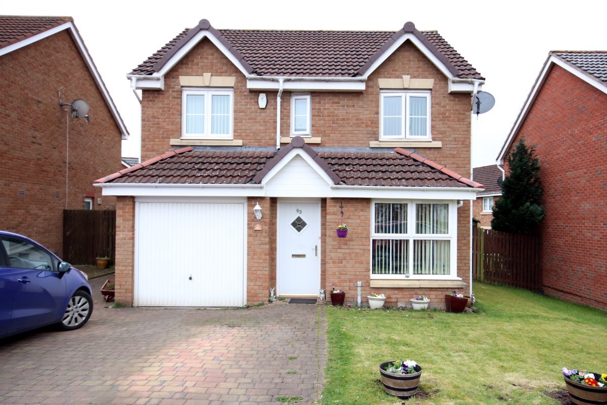Splendid modern four bedroom detached family villa in quiet popular development within the small town of Carfin, north-east of Motherwell. Early viewing recommended. The property is within easy reach of a wide range of local amenities including ASDA 24hr superstore, popular Lidl and Aldi stores. Quick and easy access to additional amenities including high street shopping can be found close by at Motherwell shopping centre, only a short drive away. Nearest train stations are Carfin (only a few minutes walk away) and Motherwell which is less than ten minutes drive away. For drivers, convenient and nearby access to major M74/ M8 motorway network. Offering a great opportunity for families, the property is within the catchment area for the following primary and secondary schools: Our Lady and St Francis Primary School, Kier Hardie Memorial Primary School, Brannock High School and Taylor High School. Comprising on the ground floor of entrance vestibule, lounge, through and through dining room with French doors to rear, fitted kitchen with built in oven, hob and canopy, utility room and downstairs wc/ cloaks. On the upper floor are located four well portioned bedrooms, the master of which benefits from having an en-suite shower room and family bathroom with shower fitment.The property benefits from gas central heating and double glazing. There is an integral garage and parking for two cars. Open plan front mostly laid to lawn and large enclosed rear garden with generous paved patio area. ENTRANCE VESTIBULE: 4ft 2in x 3ft 6in (1.27m x 1.07m) LOUNGE: 17ft 5in x 13ft 4in NT 8ft 9in (5.31m x 4.06m NT 2.67m) DINING ROOM: 10ft x 7ft 7in (3.05m x 2.31m) KITCHEN: 9ft 5in x 9ft 2in (2.87m x 2.79m) UTILITY ROOM: 5ft 7in x 5ft 2in (1.70m x 1.58m) DOWNSTAIRS WC: 5ft 2in x 3ft 10in (1.58m x 1.17m) MASTER BEDROOM: 13ft 5in x 8ft 7in (4.09m x 2.62m) EN-SUITE: 6ft x 4ft 7in (1.83m x 1.40m) BEDROOM TWO: 11ft 10in x 8ft 11in (3.61m x 2.72m) BEDROOM THREE: 9ft x 6ft 11in (2.74m x 2.11m) BEDROOM FOUR: 11ft x 8ft 8in NT 5ft 8in (3.35m x 2.64m NT 1.73m) BATHROOM: 5ft 9in x 6ft 11in (1.76m x 2.11m)