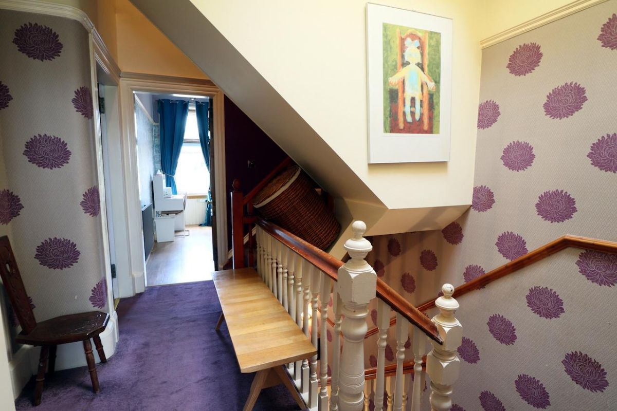 Accommodation on the ground floor comprises of entrance vestibule, broad reception hall and an impressive bay windowed lounge with feature fireplace and solid fuel fire. Appealing family sitting room with polished cast iron feature fireplace and living flame fire. Fitted dining kitchen with utility room and small toilet off. On the first floor are located three double bedrooms and a four piece family bathroom. There are an additional two good sized bedrooms located on the second floor.
