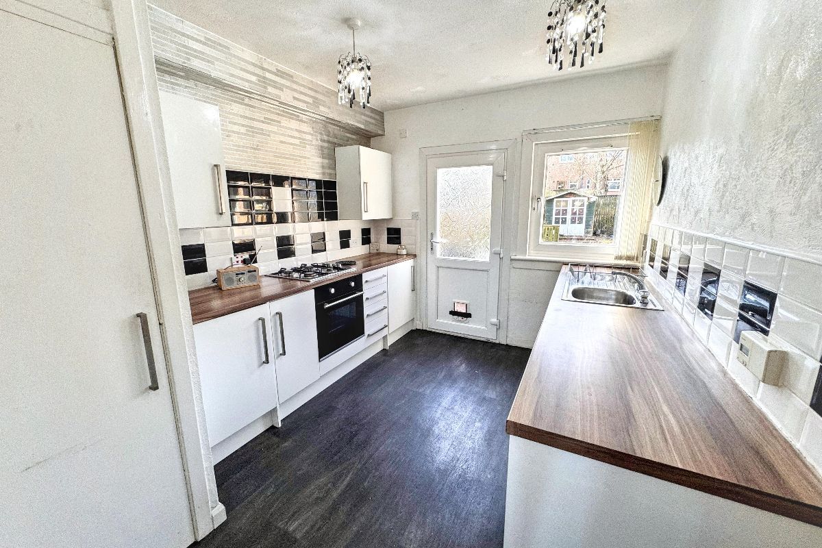 Generously proportioned lower main door terrace flat offering large family size accommodation. The property is conveniently situated for access to a range of local amenities with everyday shopping facilities just minutes’ walk away. More extensive shopping facilities are to be found within the Silverburn Retail Park only a short drive away. Commuters benefit from access to main bus routes, Nitshill train station, and the M8/M77 motorway networks all of which are close by.